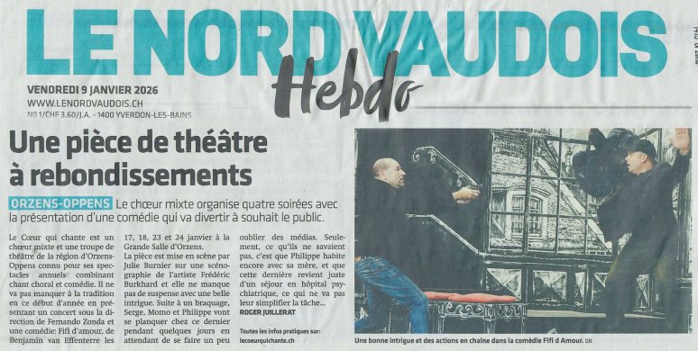 A voir en janvier 2025 sur les planches du théâtre d’Orzens. (Réservations dès le 16 décembre sur https://lecoeurquichante.ch/ )