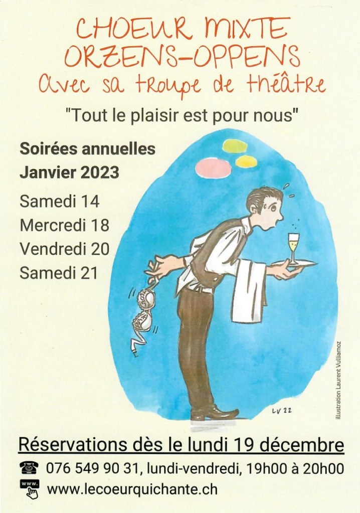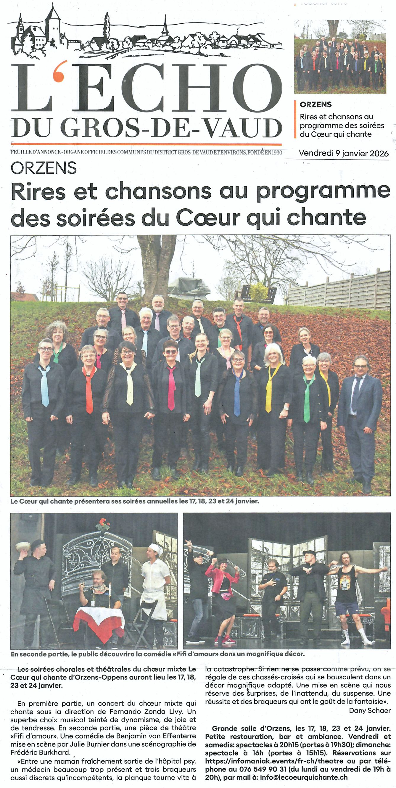 A voir en janvier 2025 sur les planches du théâtre d’Orzens. (Réservations dès le 16 décembre sur https://lecoeurquichante.ch/ )