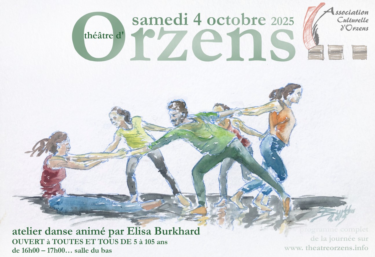 - 16h – 17h : atelier danse et éveil du corps avec Elisa … salle du bas