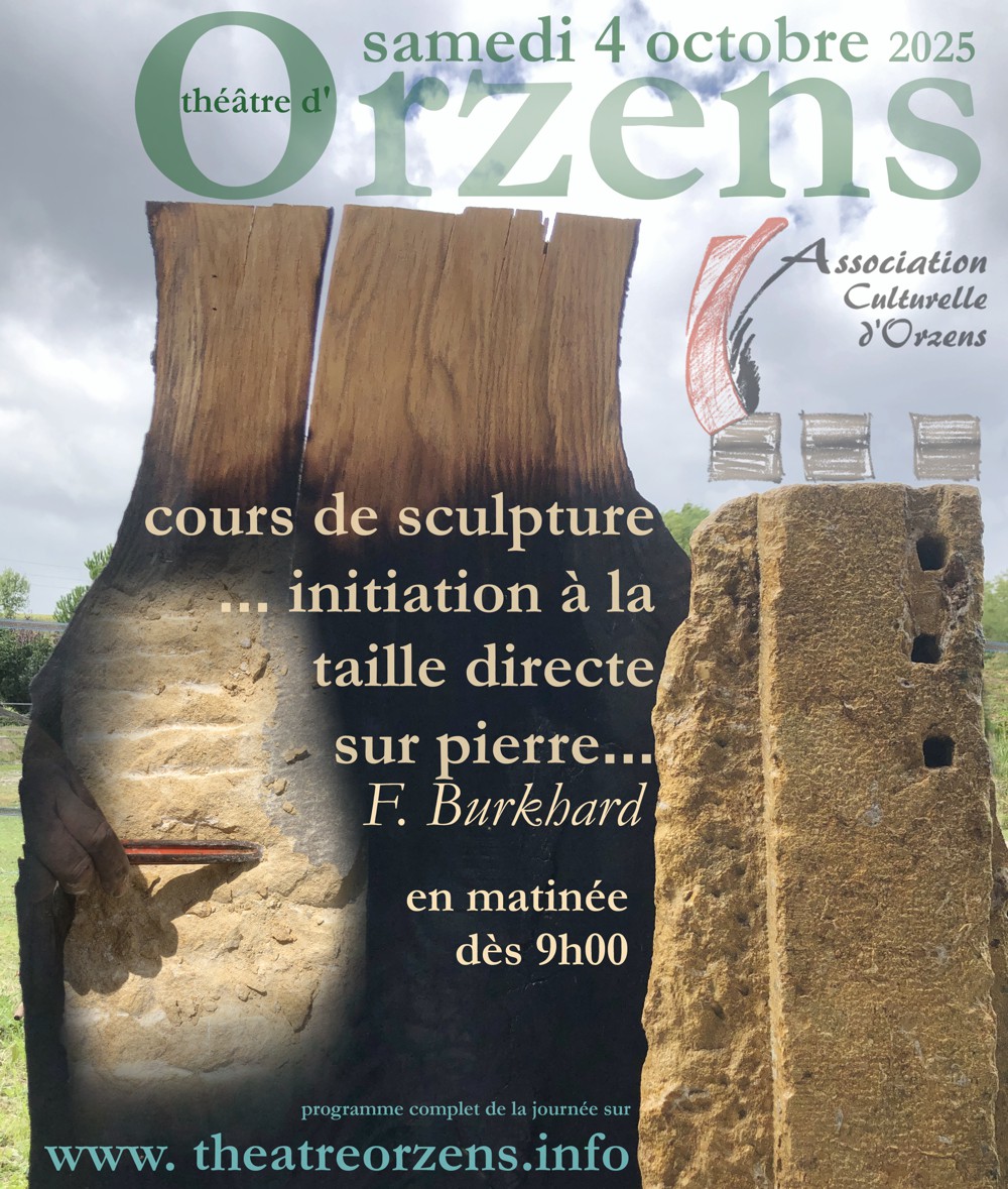 - à partir de 9h : Atelier sculpture, initiation à la sculpture sur pierre, avec Frédéric Burkhard … extérieur