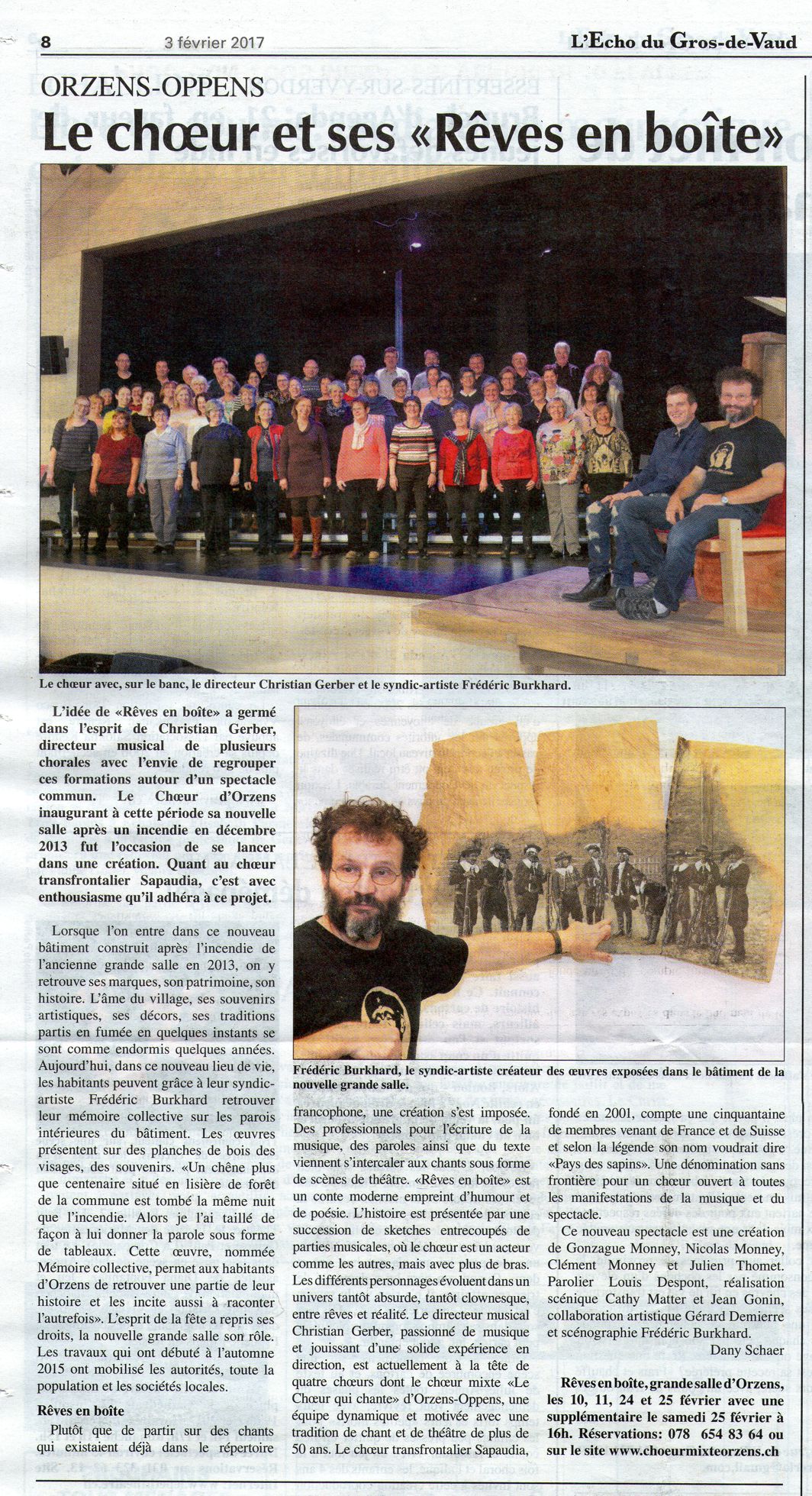 L’Echo du Gros-de-Vaud, 3 février 2017, Dany Schaer
