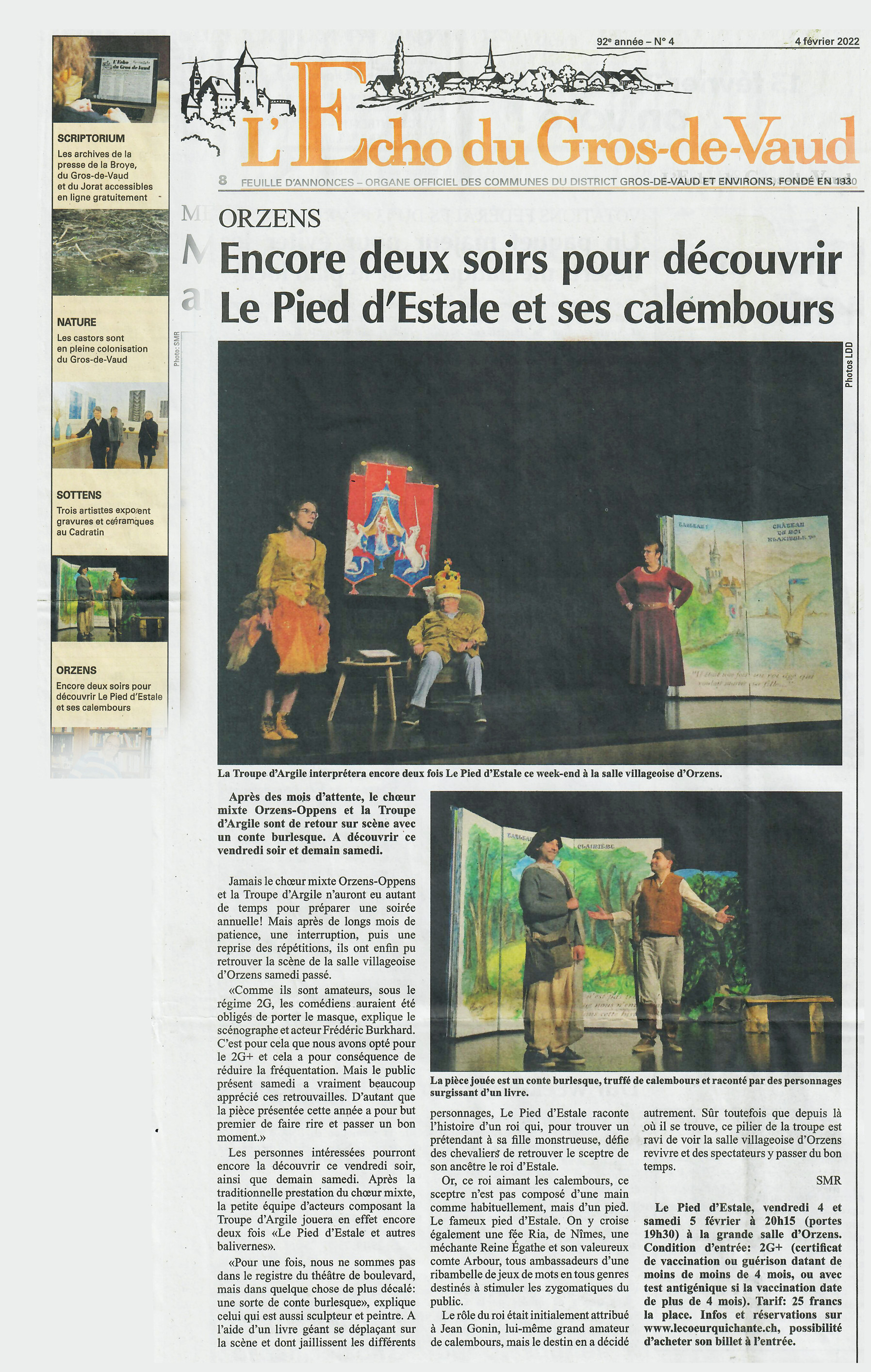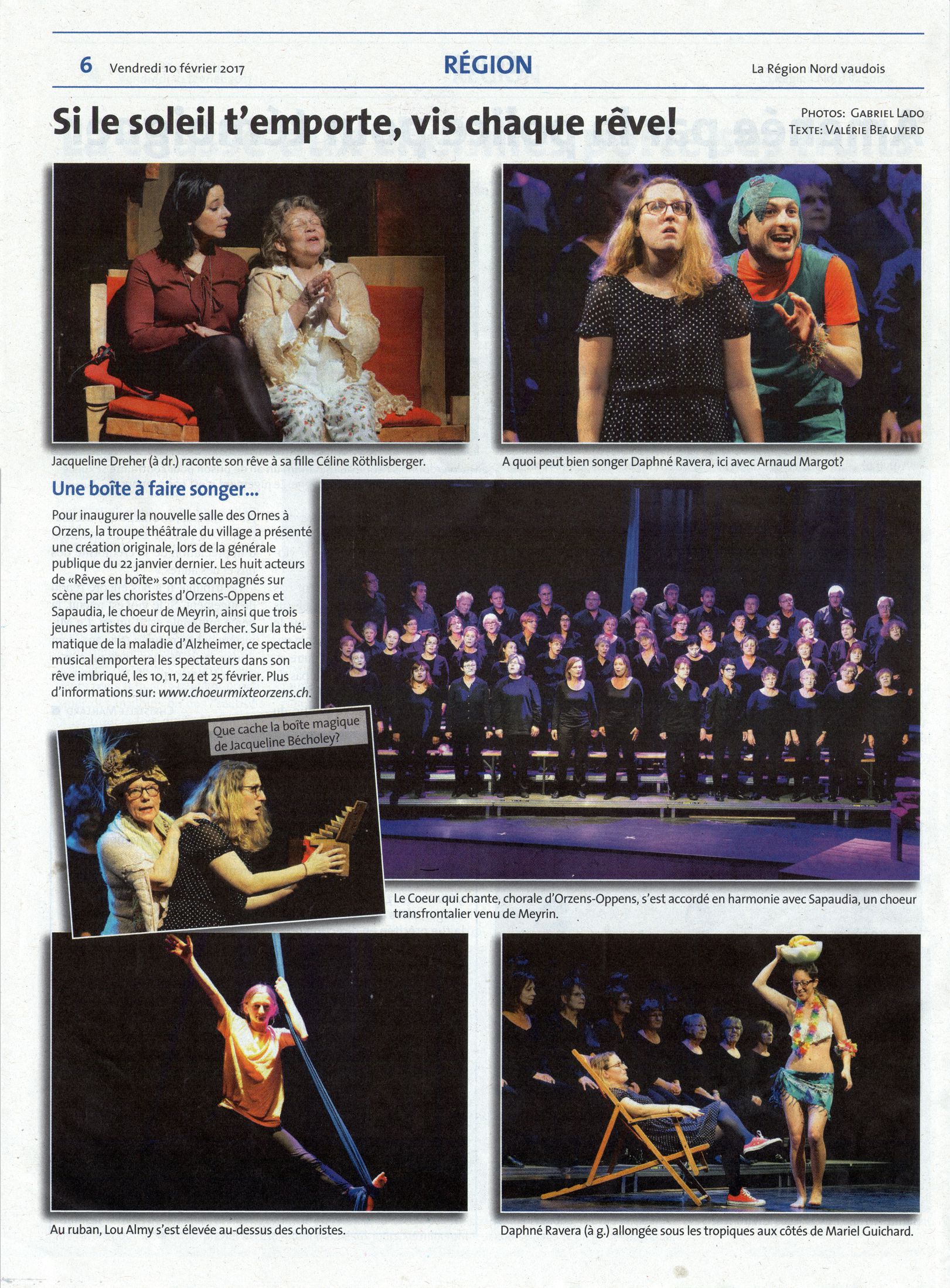 La Région Nord Vaudois 10 février 2017,texte Valérie Beauverd, photos Gabriel Lado.