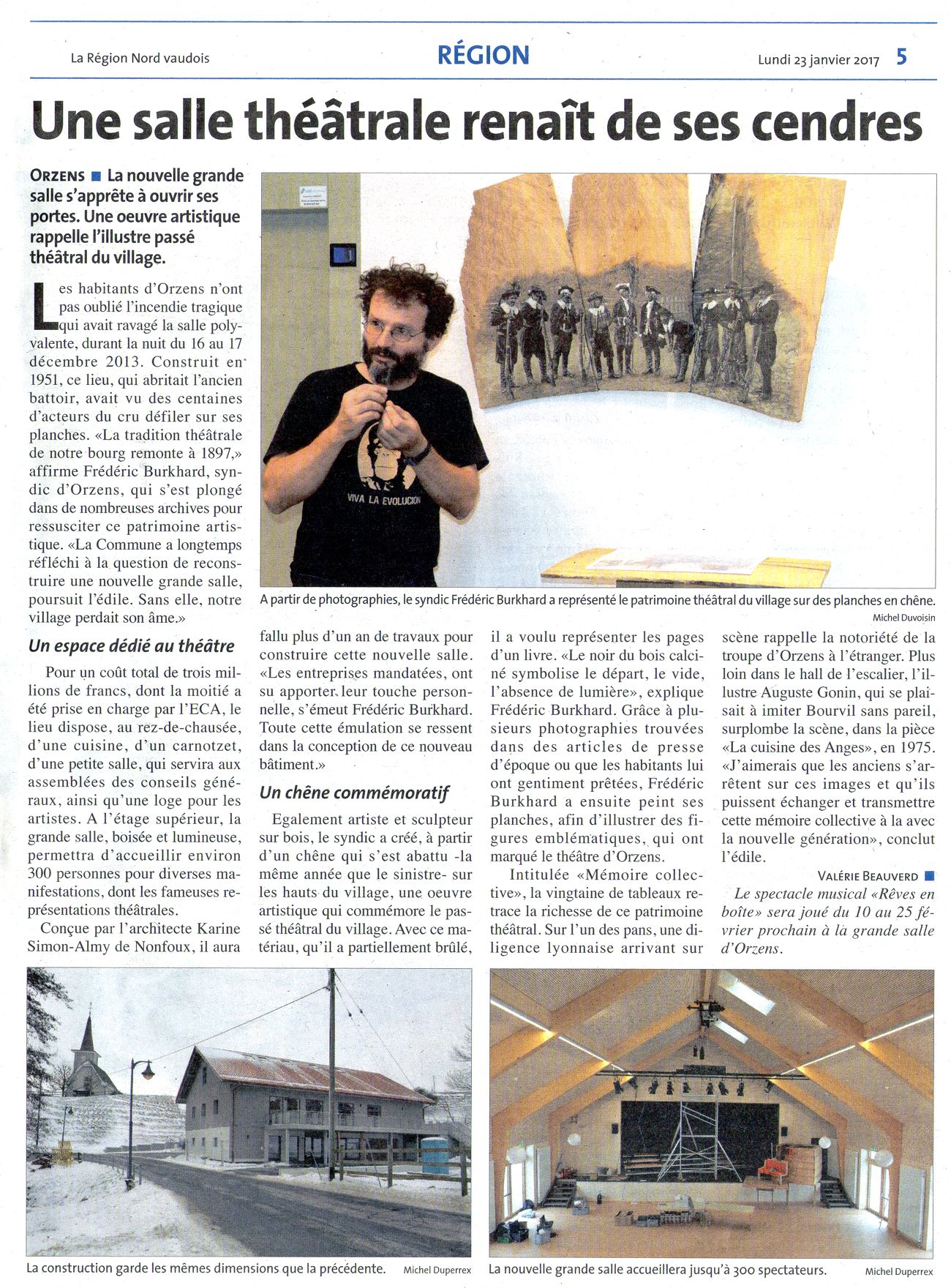 La Région Nord Vaudois 23 janvier 2017, Valérie Beauverd, photos Michel Duperrex et Michel Duvoisin
