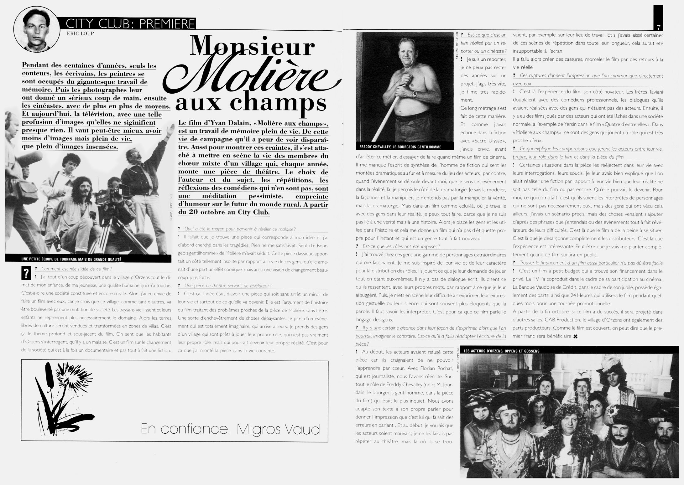 Ci-dessous vidéo réalisée par Tutti Lavanchy présentant les préparatifs, les répétitions du « Bourgeois Gentilhomme », et le tournage du film « Monsieur Molière aux champs ».