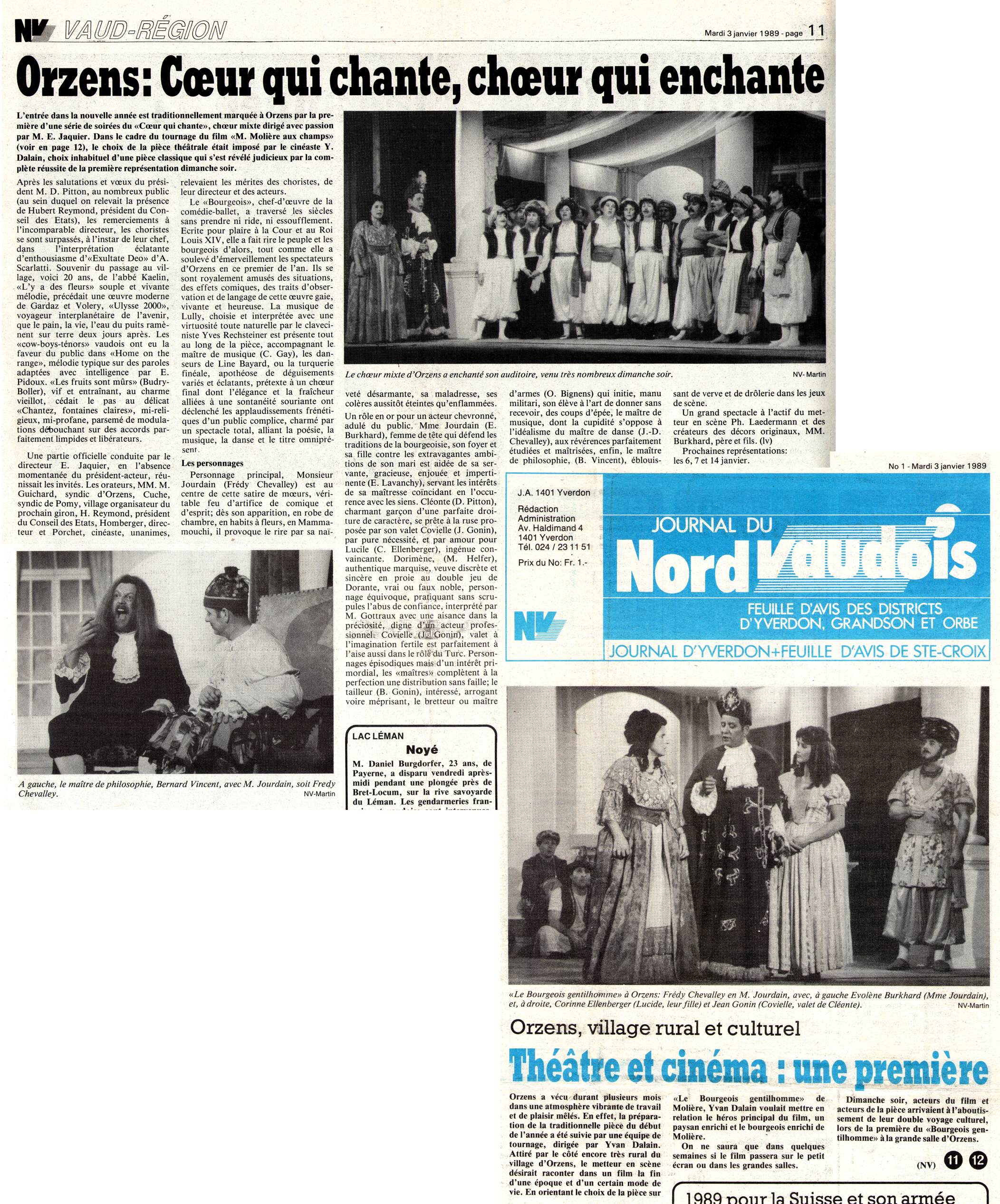 Le rideau levé sur 1989 fait apparaître le talent, jusqu’ici méconnu, des gens d’Orzens, petit village au détour des routes entre Echallens et Yverdon. Les habitants célèbrent la nouvelle année en pouvant se flatter d’être tout à la fois paysans, comédiens classiques, choristes et acteurs de cinéma.