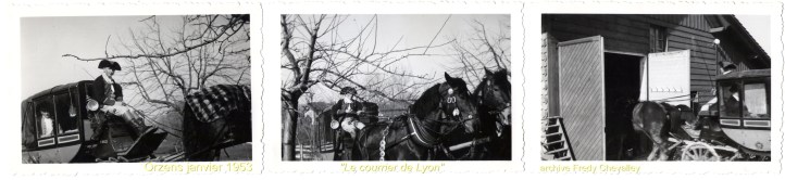 Les acteurs et la diligence du Courrier de Lyon de 1935 dans les champs derrière la « nouvelle » salle d’Orzens