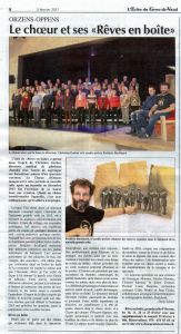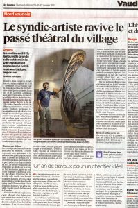 …Beaucoup disaient : « C’est une folie ! ils n’y arriveront pas ». Et pourtant, voilà qui est fait, sans un accroc. Il n’y avait rien ; il fallut tout monter : salle de représentation, scène neuve, multiples décors, salons, chambre n mander, boudoir, prison, attaque d’une diligence, etc., etc. Que de répétitions durant le 1er trimestre de cette année, que de reprises, de conseils ! Mais les gars du Chœur d’hommes « l’Union » ont du cran et ils l’ont bien montré. Oh ! ce ne fut pas parfait, surtout le samedi et n’allons pas croire que les acteurs villageois soient, arrivés à égaler la troupe lausannoise. Il ne faut pas se faire d’illusions ! Mais ces gens du Gros de Vaud méritent de sincères félicitations. C’était, bien, même, très bien.