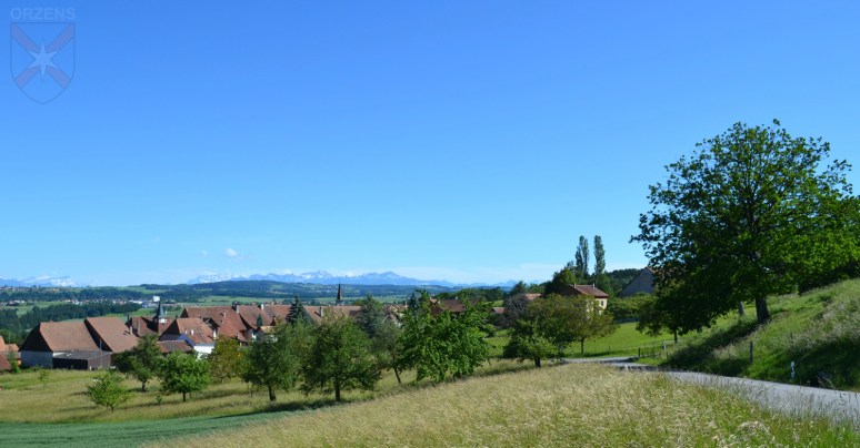 La commune fait partie du district Jura – Nord vaudois, donc démarrons notre itinéraire depuis Yverdon-les-Bains. Prenez la route de Moudon puis bifurquez en direction de Bercher. Jusque dans les hauts d’Ursins la vue se dégage sur la plaine de l’Orbe et les crêtes du Jura, mais dès que la route descend et entre sur le territoire d’Orzens, la vue tourne et s’ouvre sur le vallon de la Menthue et au loin les Alpes : « depuis Orzens on voit le Moléson ». Laissez votre regard glisser vers la gauche et, au plus loin qu’il portera, vous pourrez, par temps clair, observer le Mont Blanc.
