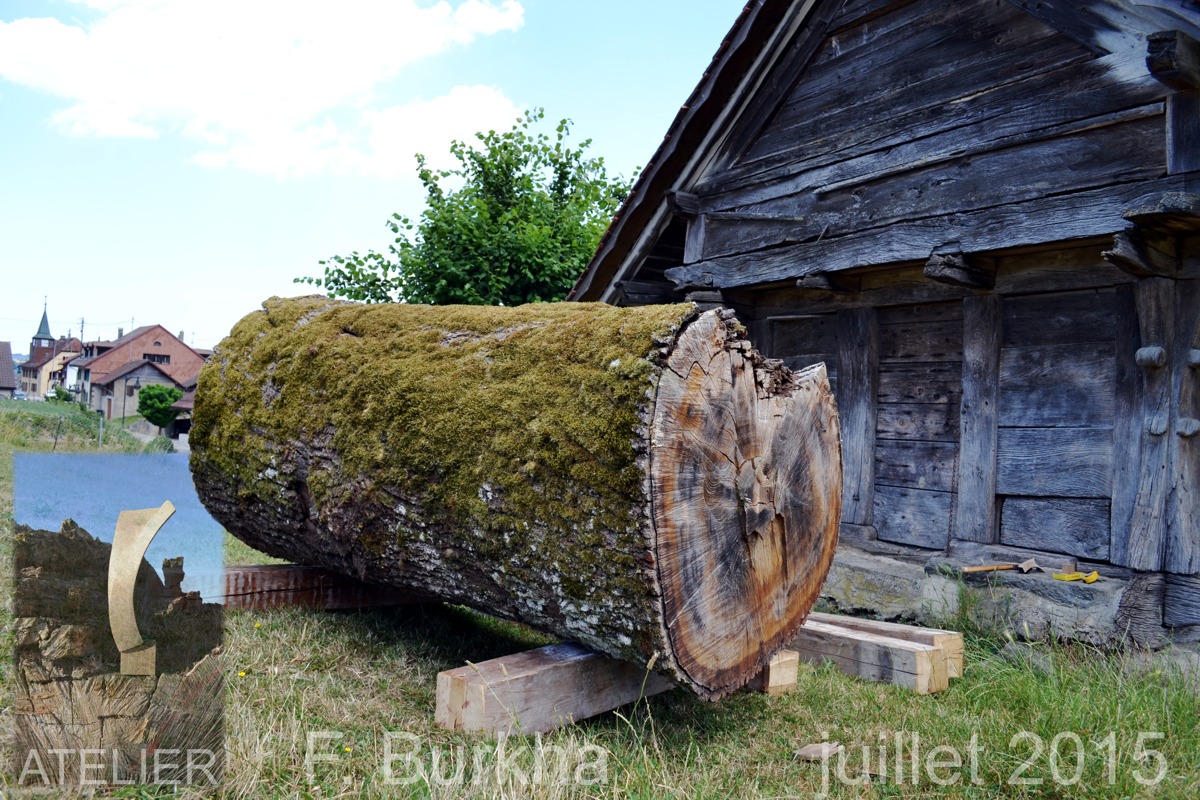 11 juillet 2015, mise en place sur le lieu de travail du tronc de chêne.