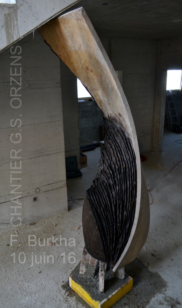 Mars 2015,colonne/livre intérieure, la taille de la forme brut et terminée et la sculpture prend la patine du temps avant la finition