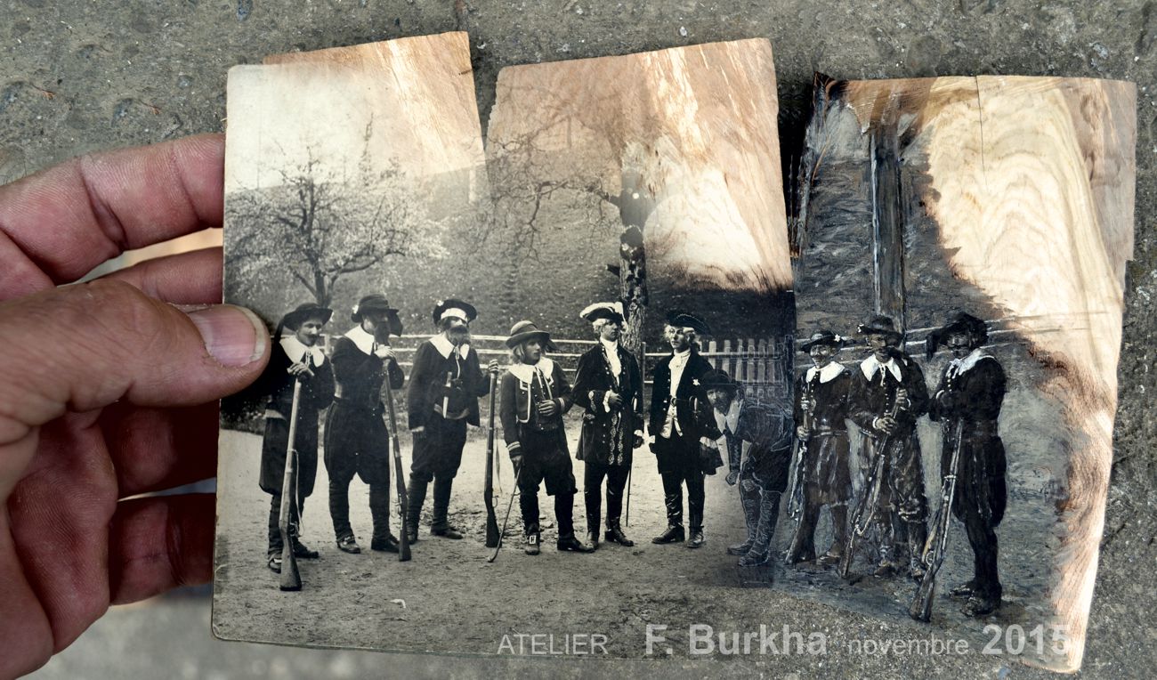 Octobre 2015 première étape de taille: dégager les planches sur lesquelles seront réalisés les portraits sur la base de photos d’archive.