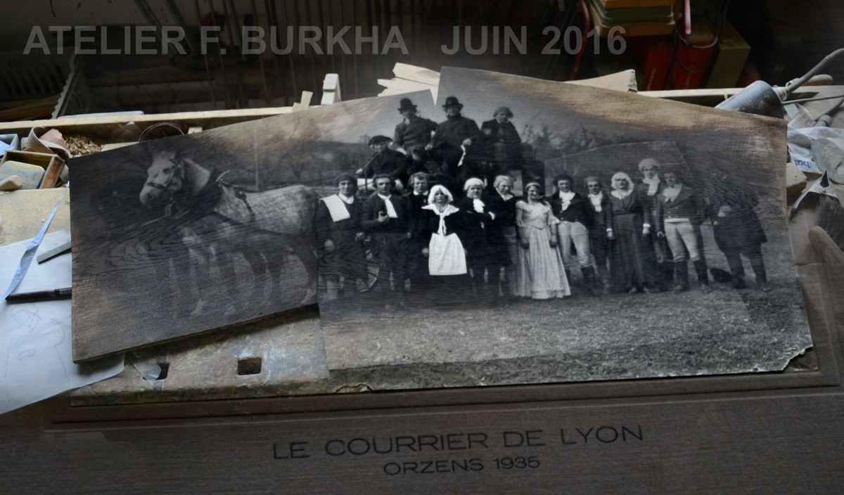 planches en cours de réalisation. Ci-dessus « le courrier de Lyon » de 1935: 17 portraits à peindre sur 3 planches.