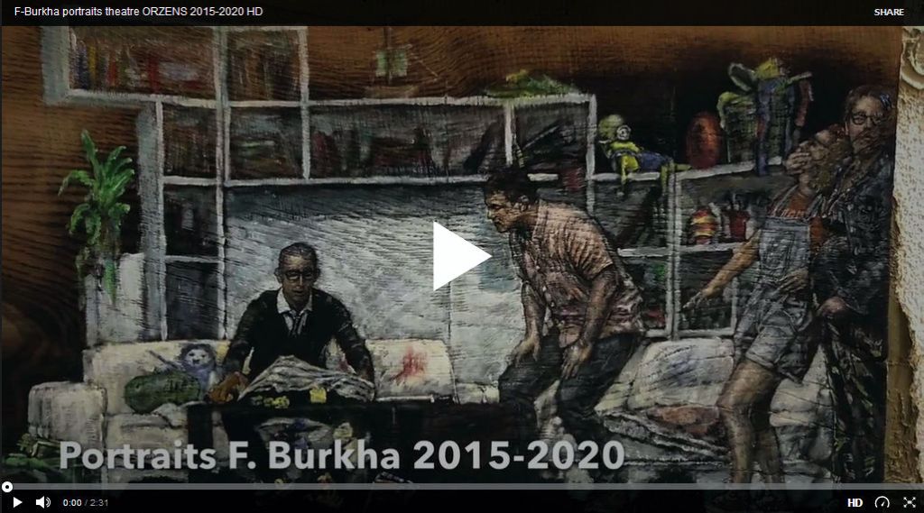 A ce jour Frédéric Burkhard a réalisé, entre 2015 et 2020, une trentaine de planches avec un centaine de portraits d’acteurs des années 1920 jusqu’à la dernière comédie jouée par la troupe d’Argile « La fête des voisins ».